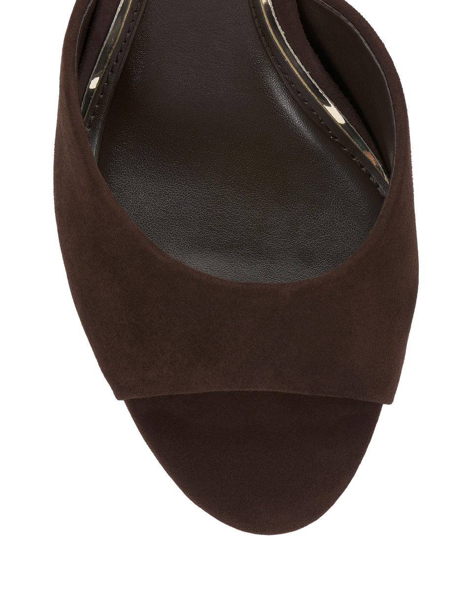 A minimalist mule gets an update with a flared heel, adding a modern architectural touch. Designed with an open round toe, the shoe features a stitched pillow footbed for all-day wearability and comfort. Wear it with cropped trousers and a blazer for a corner-office-to-cocktails look.